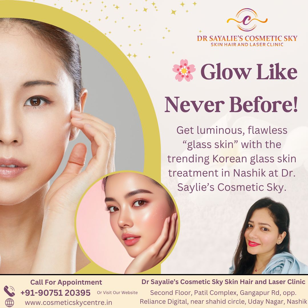 The trend of achieving smooth, radiant, and translucent skin has made the Korean glass skin treatment in Nashik a popular choice at Dr Sayalie’s Cosmetic Sky skin hair and laser clinic. This multi-step treatment focuses on deep hydration, exfoliation, and nourishment to give your skin a luminous, mirror-like glow.