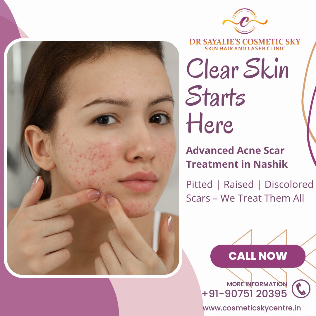 Ready to say goodbye to acne scars? Visit Dr Sayalie’s Cosmetic Sky Skin Hair and Laser Clinic in Nashik for a consultation and start your journey to clearer skin.