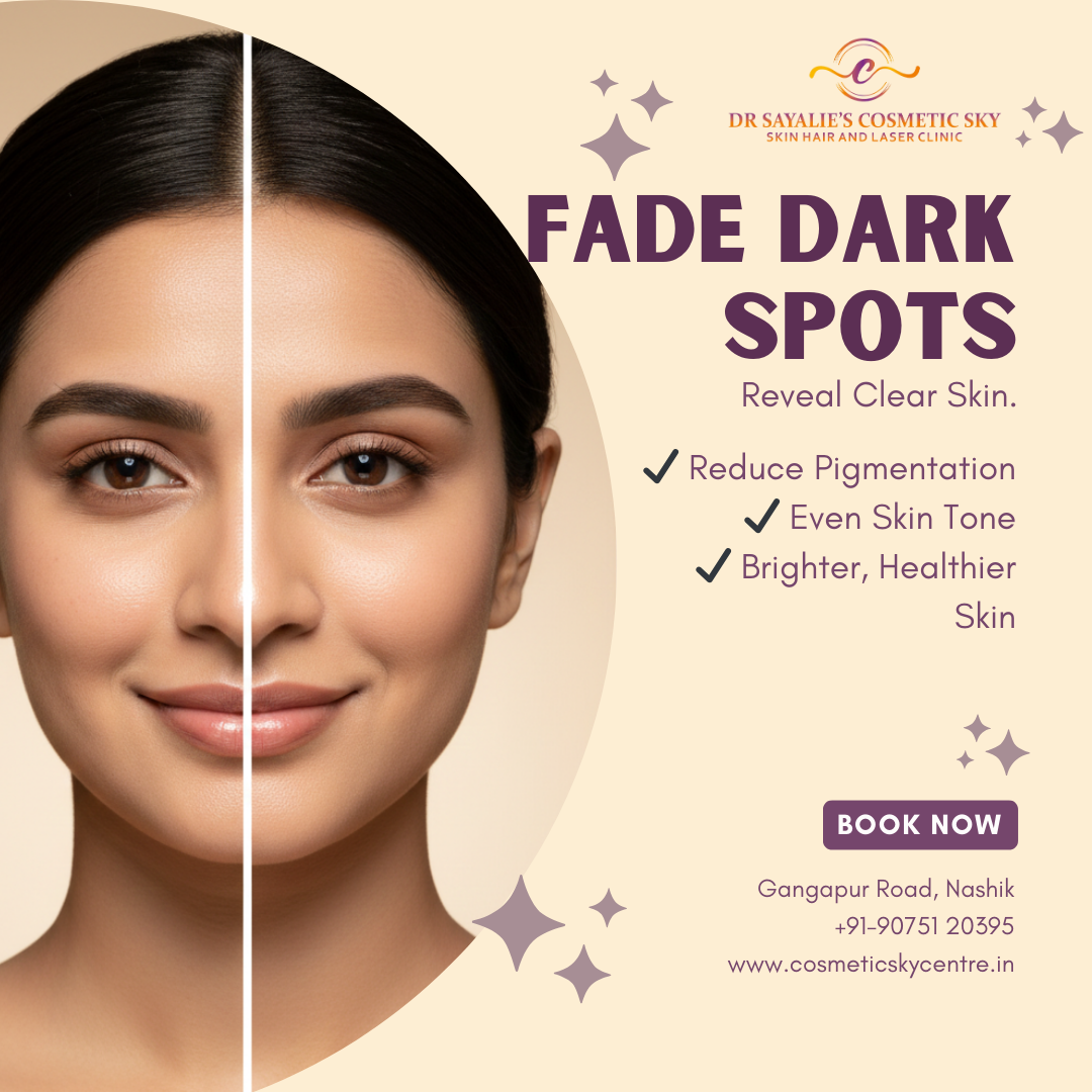 Address dark spots confidently, book your consultation at Dr Sayalie’s Cosmetic Sky Skin Hair and Laser Clinic in Nashik today.